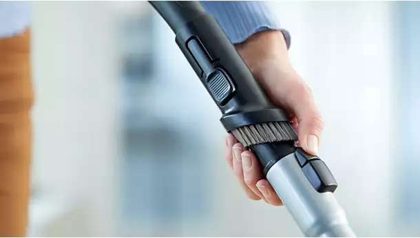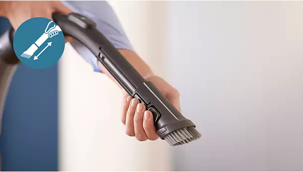 ابزار برس گردگیری در دسته تعبیه شده است، بنابراین همیشه آماده استفاده روی مبلمان، سطوح صاف و روکش مبلمان است.