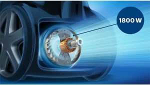موتور بادوام ۱۸۰۰ واتی تا ۳۶۰ وات قدرت مکش بالا برای نتایج کامل نظافت تولید میکند.