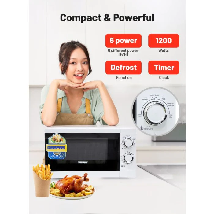 کارکرد آسان – این مایکروویو دستی ۱۲۰۰ وات، آشپزی را سریع و ساده میکند. انتخاب ۶ تنظیم قدرت به شما امکان میدهد به راحتی دمای مناسب را برای انواع غذاها پیدا کنید و عملکرد یخزدایی موجود به شما این امکان را میدهد که غذاها یا مواد منجمد خود را در عرض چند دقیقه گرم کنید.